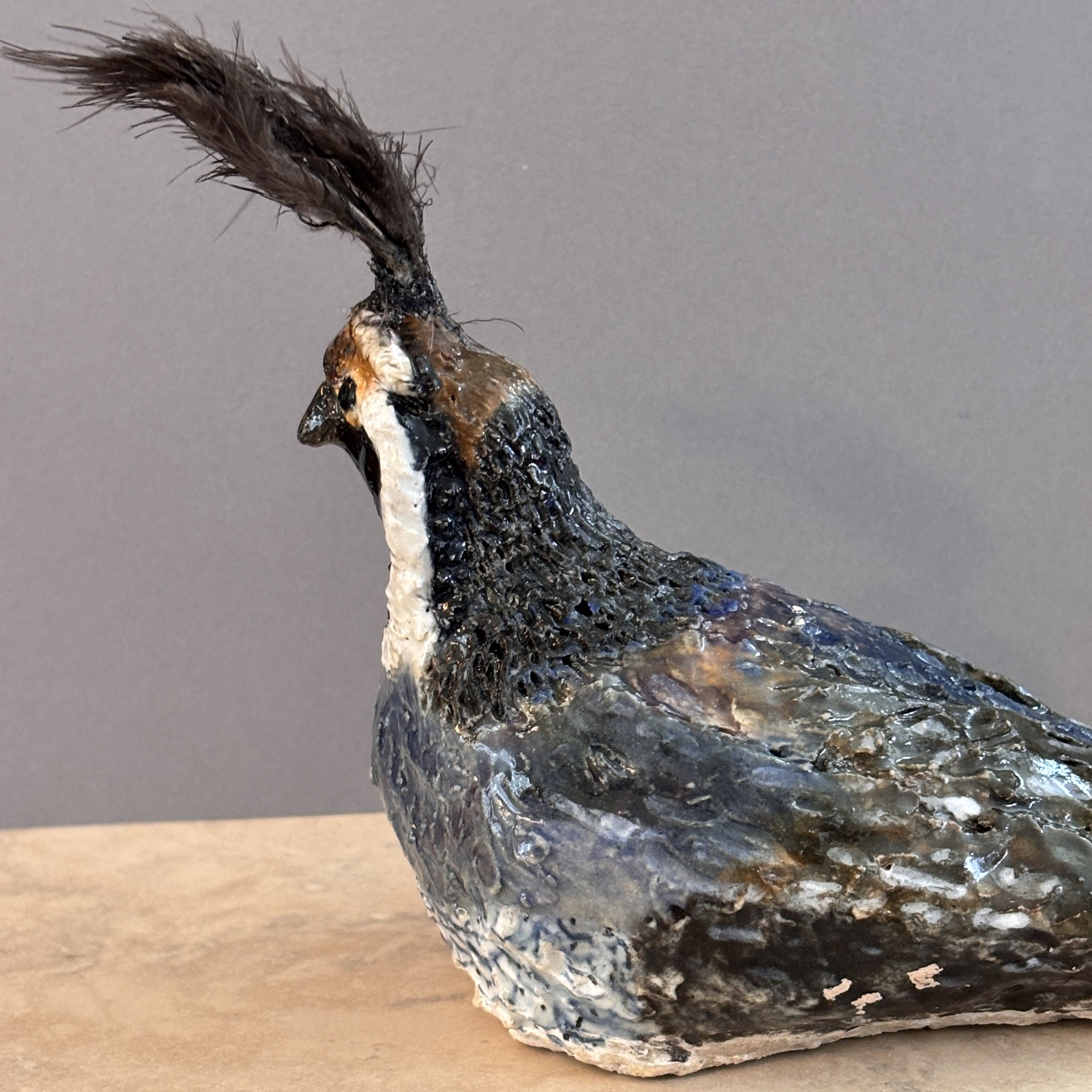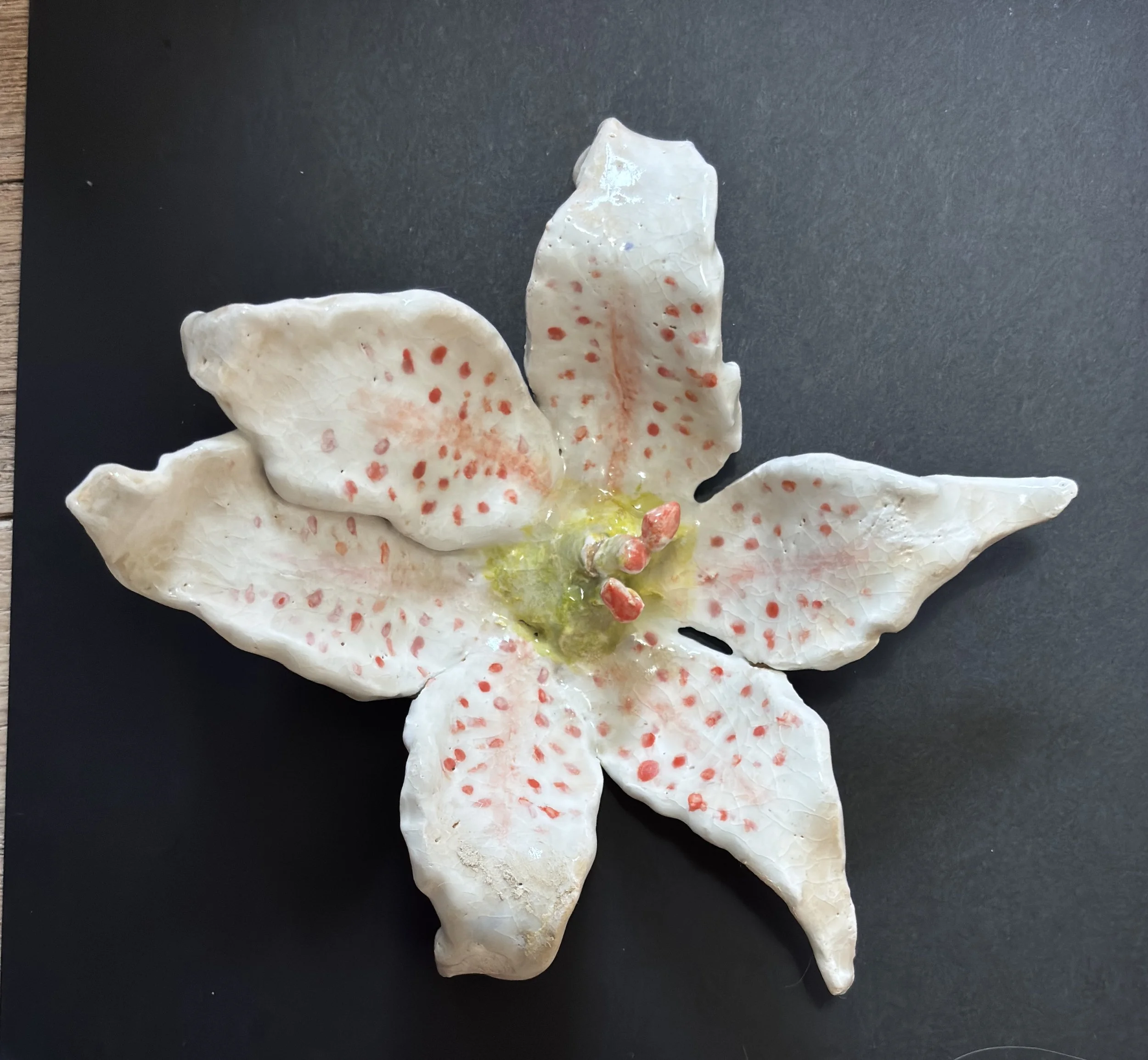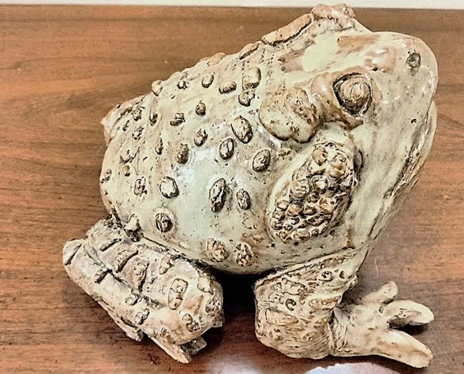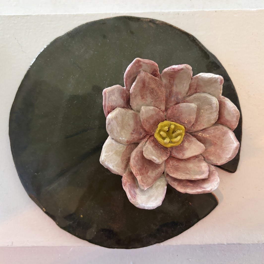 I handbuild ceramics—mainly animals like bullfrogs, cardinals, and lilypads.
