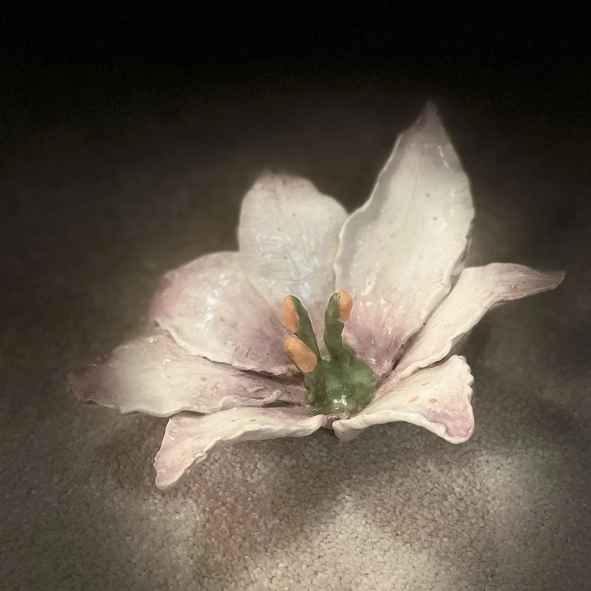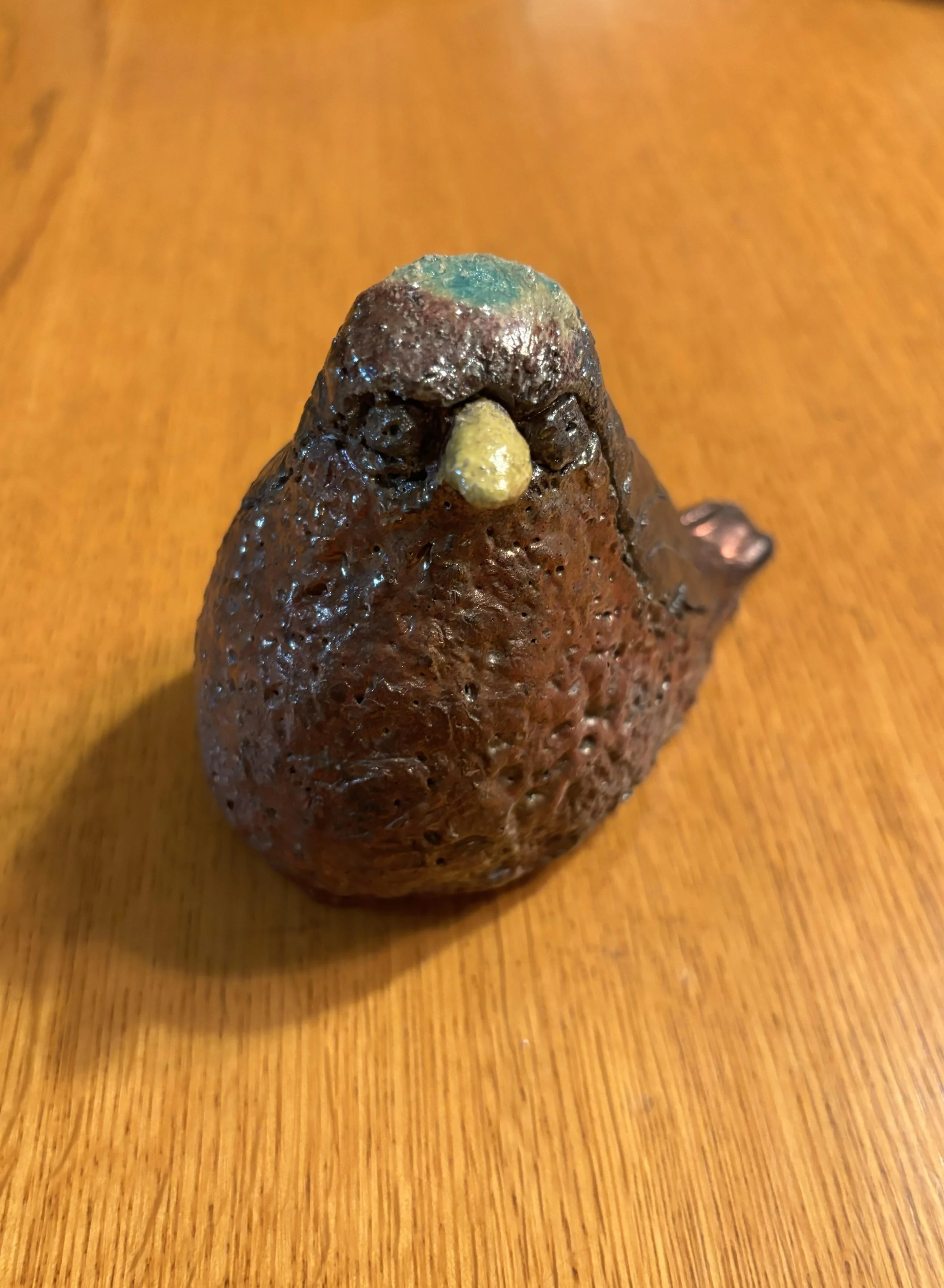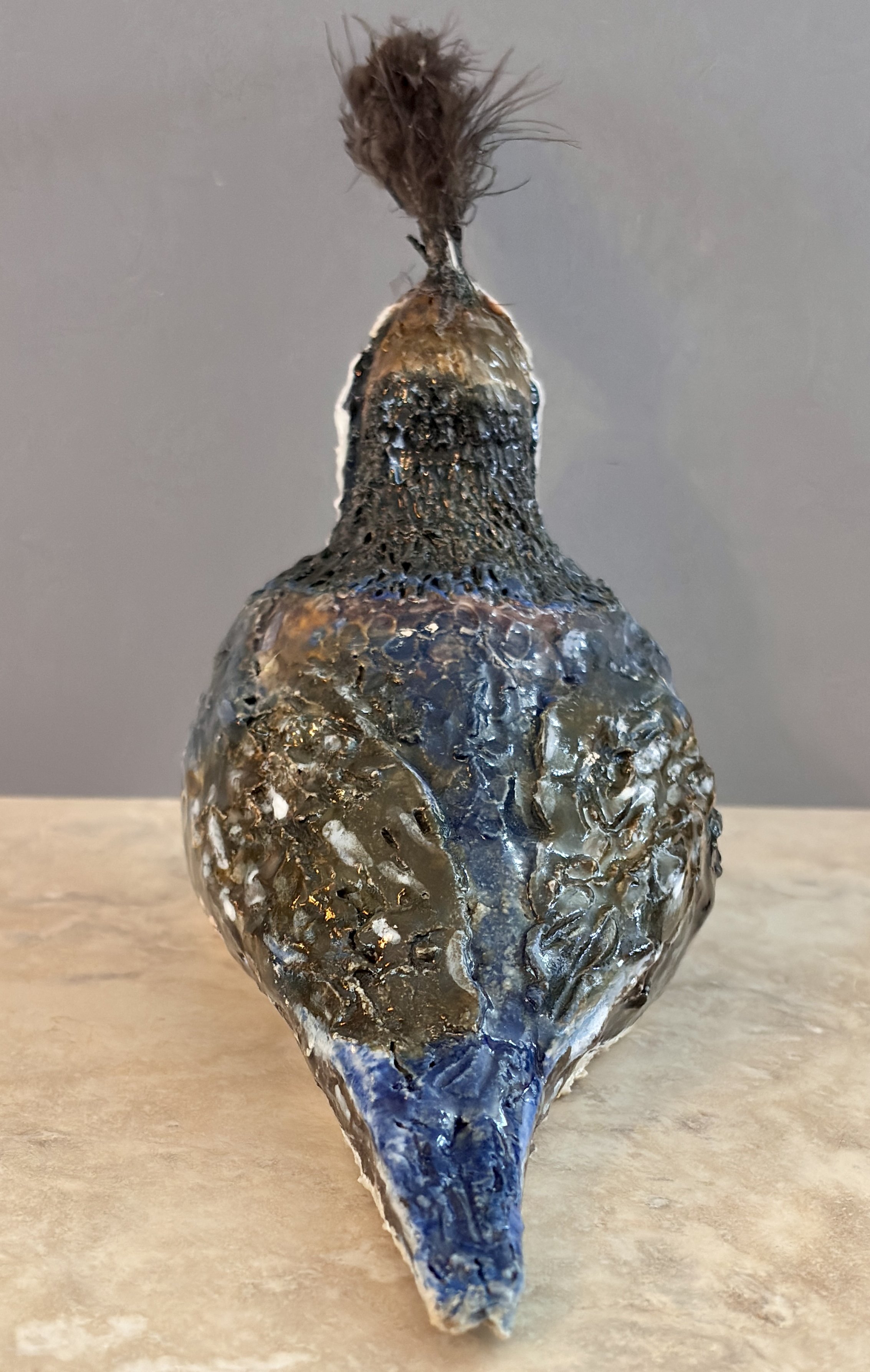 I handbuild ceramics—mainly animals like bullfrogs, cardinals, and lilypads.