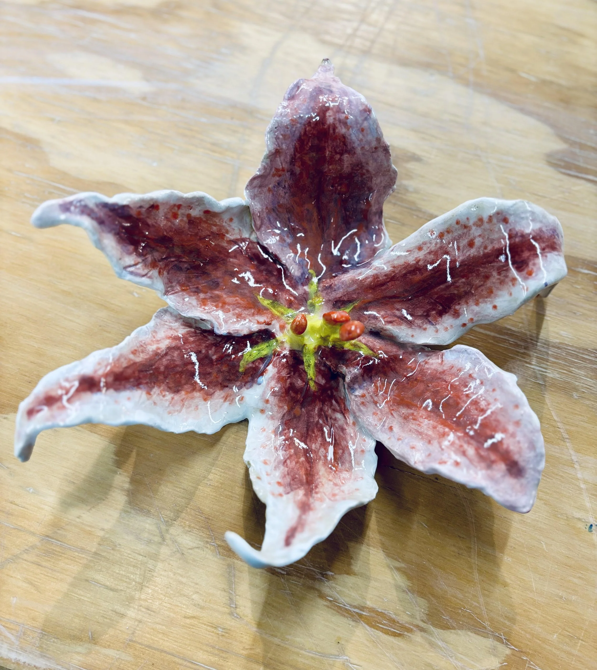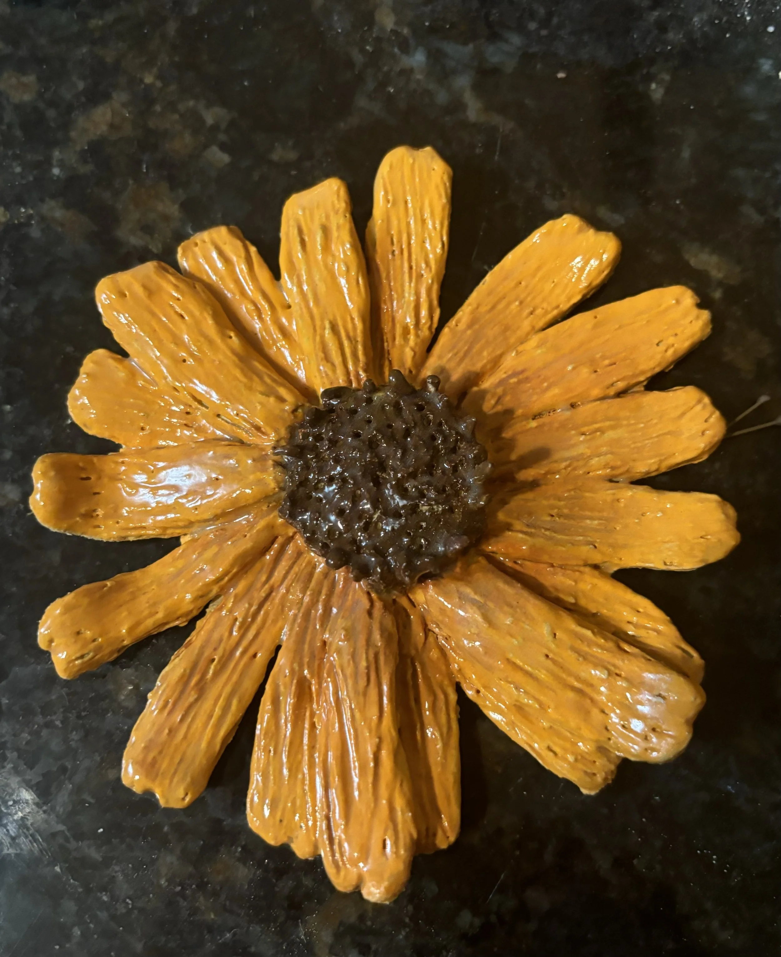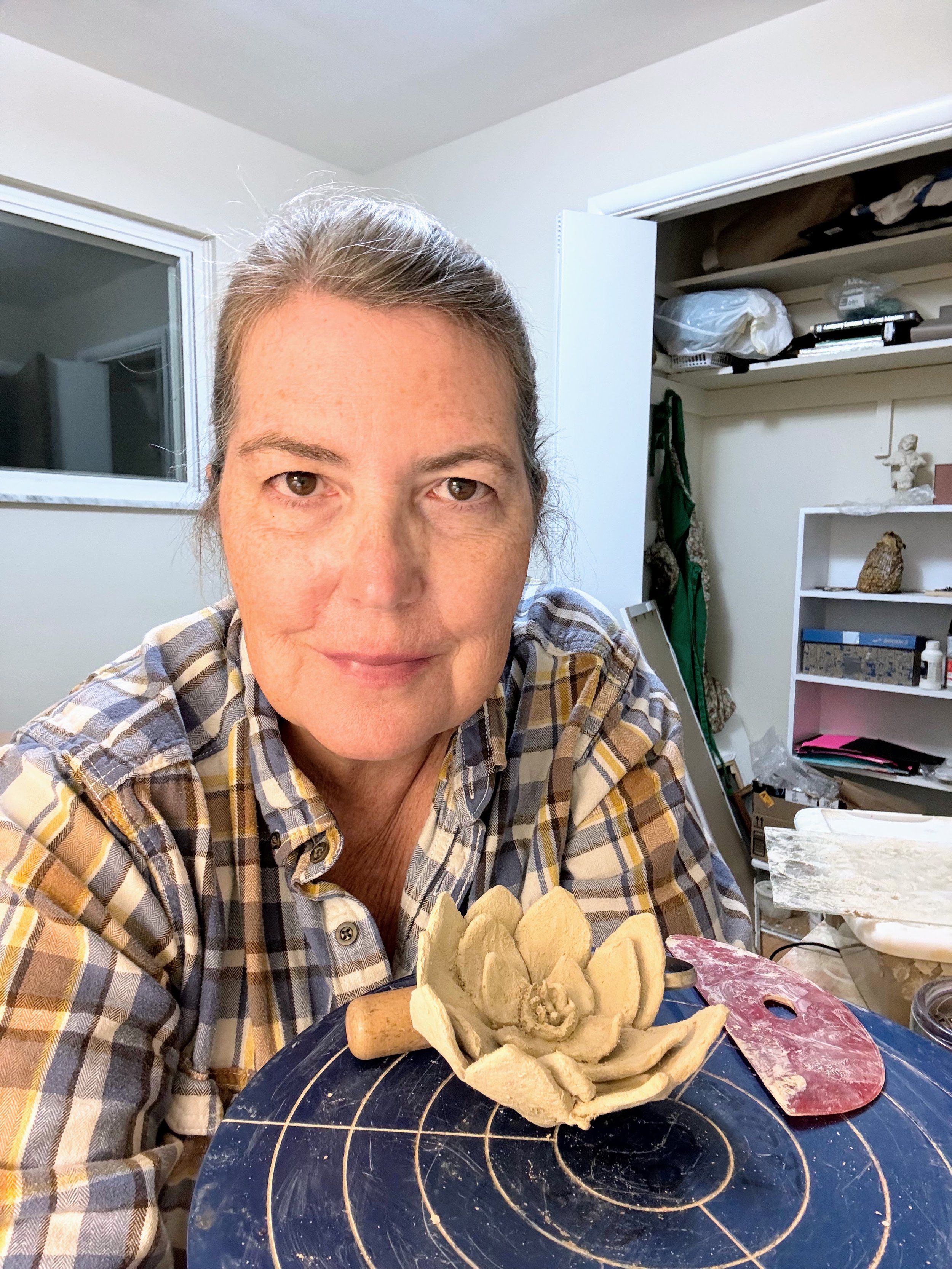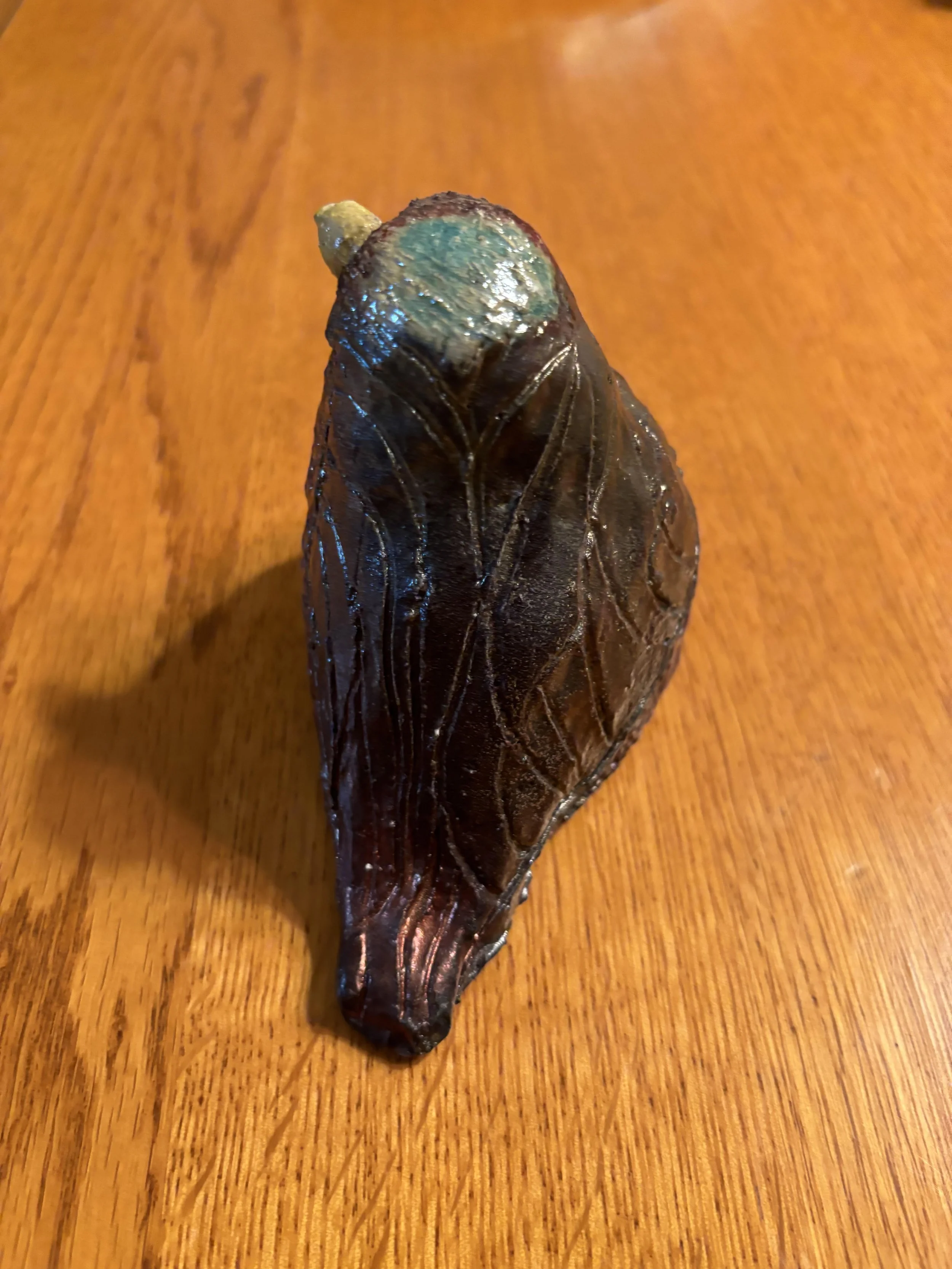 I handbuild ceramics—mainly animals like bullfrogs, cardinals, and lilypads.